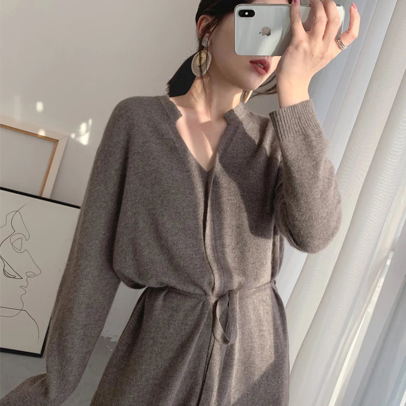 • Midi w odcieniu apricot wykonana z miękkiej, otulającej dzianiny z domieszką wełny – ciepła i komfortowa.